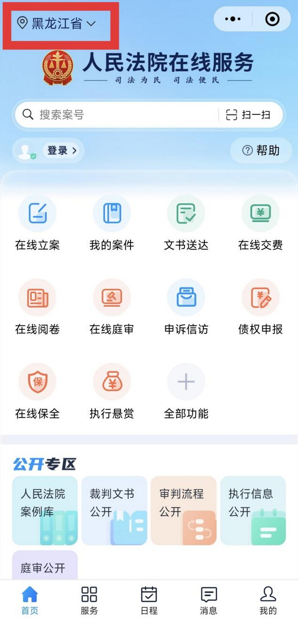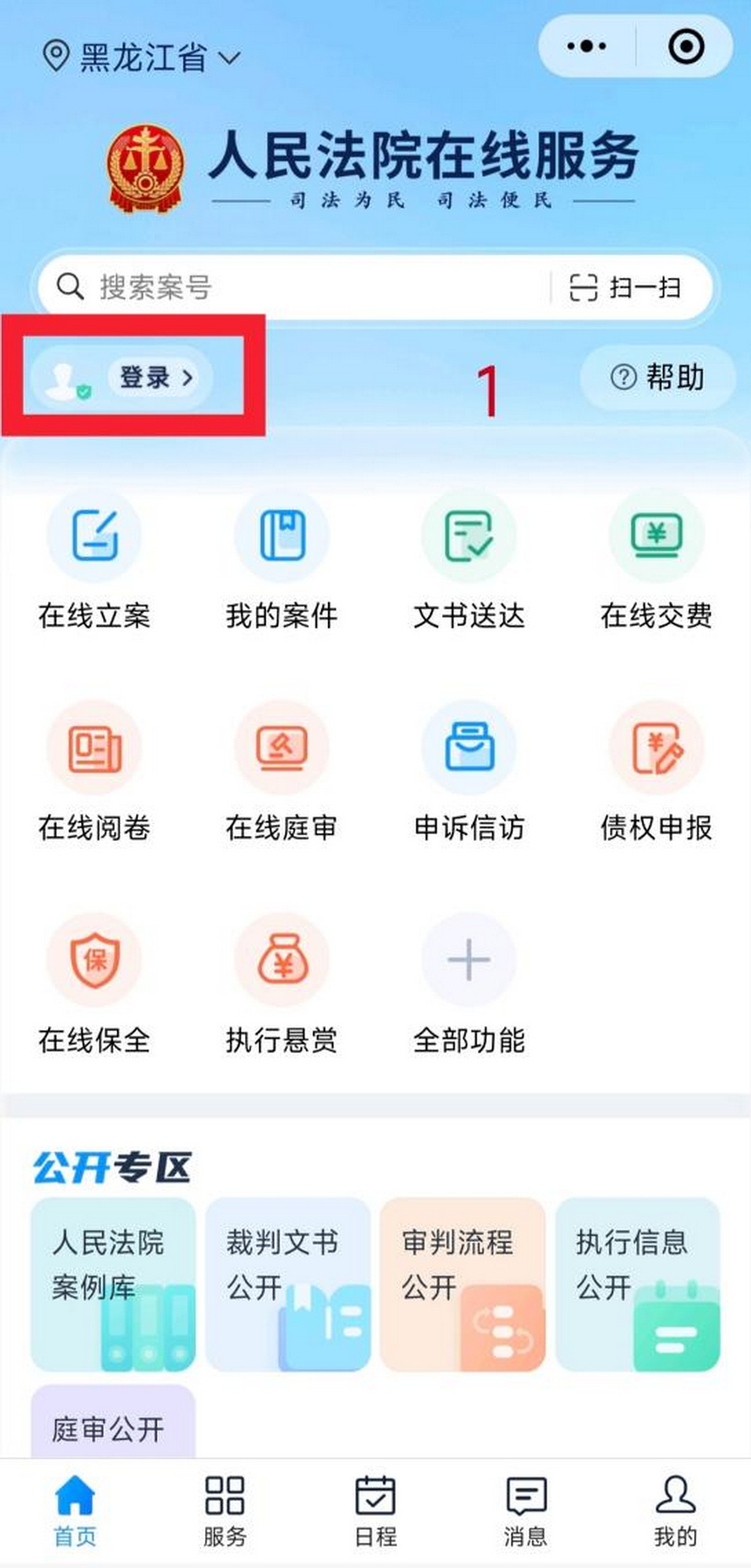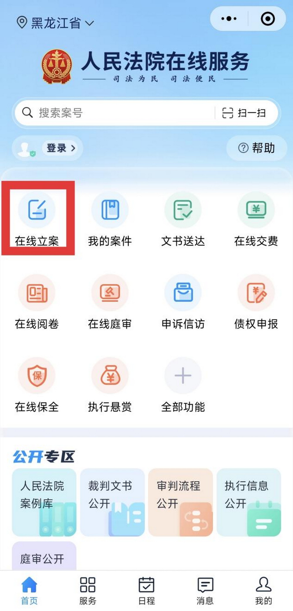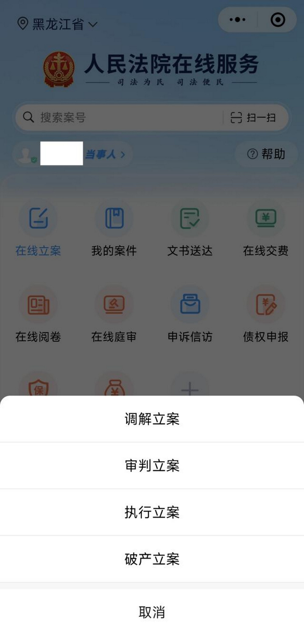 四、注册成功后,点击“在线立案”,选择具体立案类型进行立案