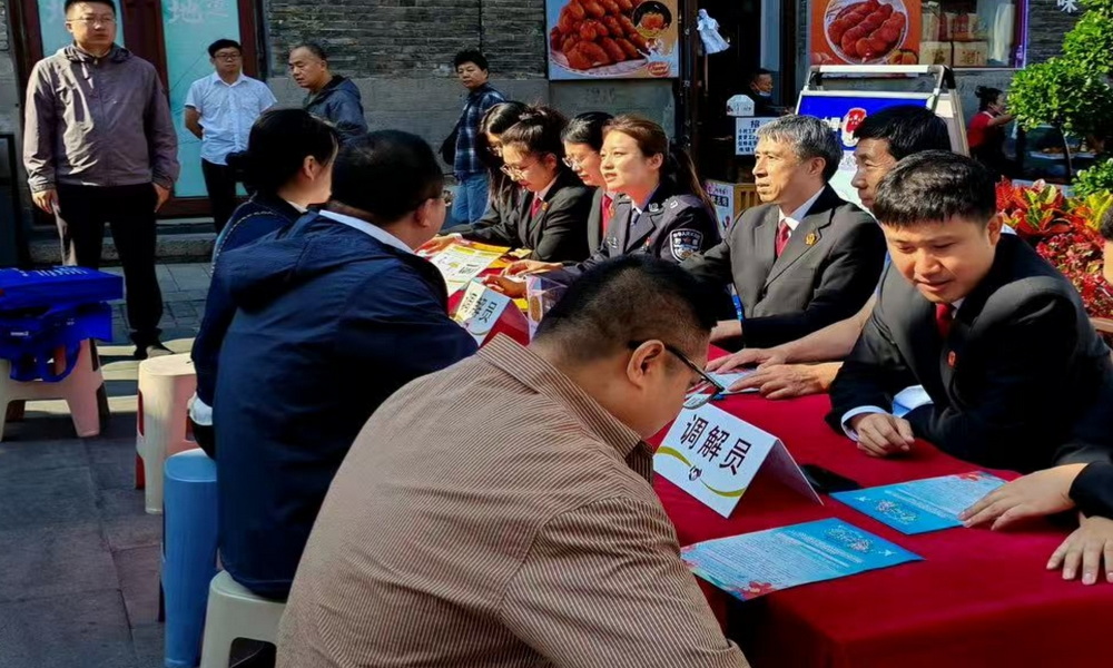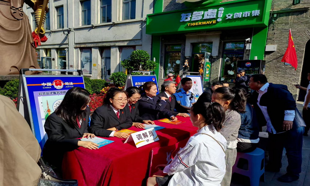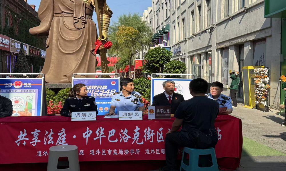 金秋十月,欢庆正浓,哈尔滨市道外区中华巴洛克街区洋溢着浓厚的节日氛围,百年建筑与市井烟火交织出独特的假日图景。为守护游客安心出行,及时化解旅途中的“小插曲”,国庆假期,道外区法院共享法庭中华巴洛克街区法律服务站携手道外区市场监督管理局靖宇市场监督管理所、道外区司法局靖宇司法所,主动靠前服务,走进街区,联合开展“国庆法治护航”专项活动,以“现场调解+法律咨询+普法宣传”的模式,将法律服务送到游客身边。