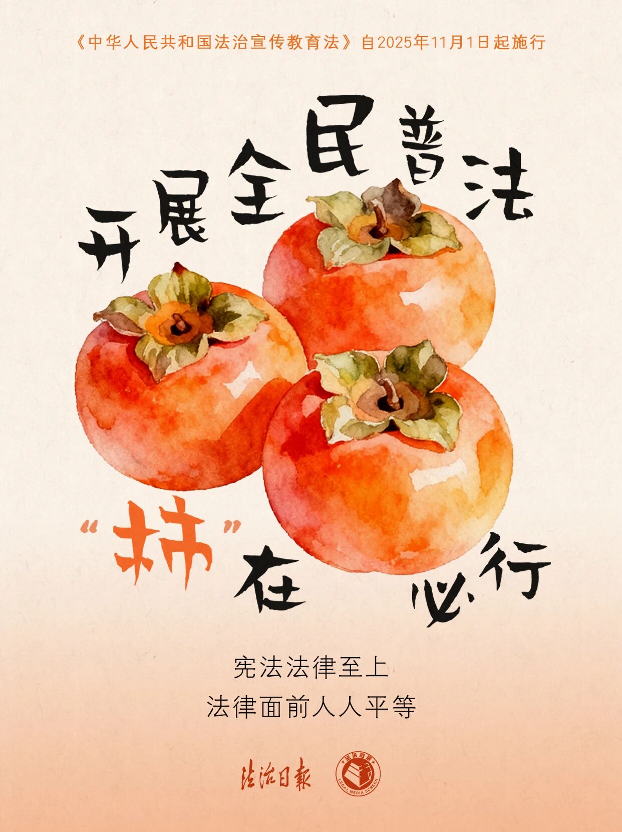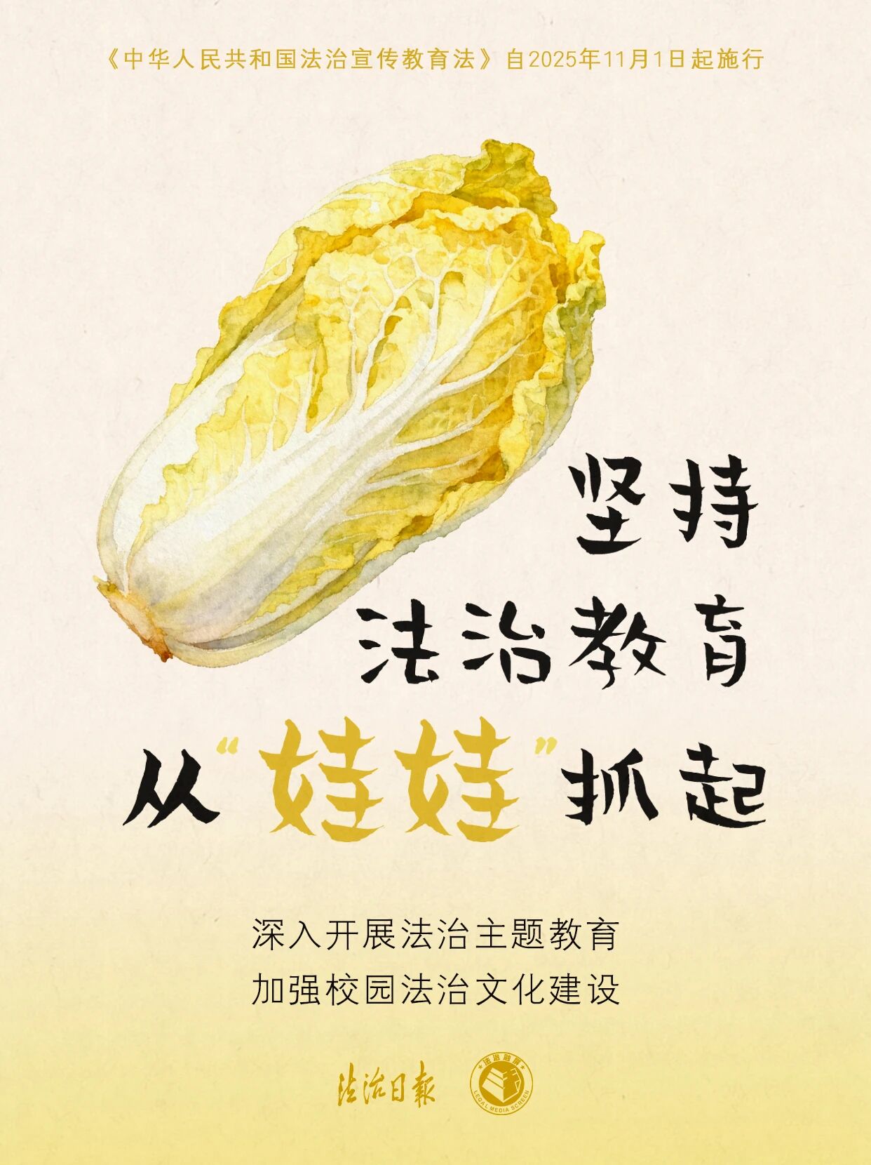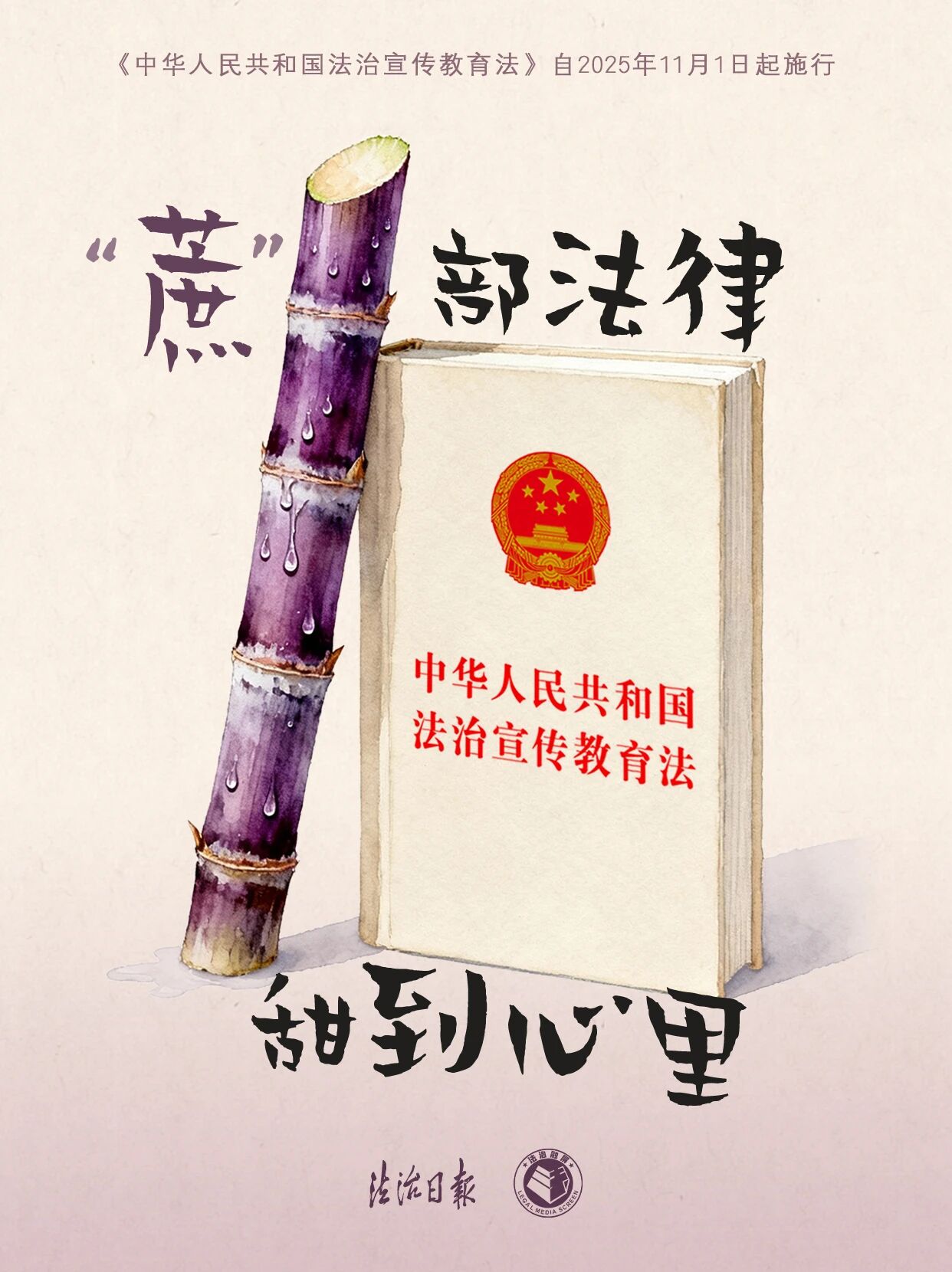 《中华人民共和国法治宣传教育法》自2025年11月1日起施行,开展全民普法,“柿”在必行、拒绝“姜”硬!一起用蔬果视角解锁“蔗”部法律,学起来~