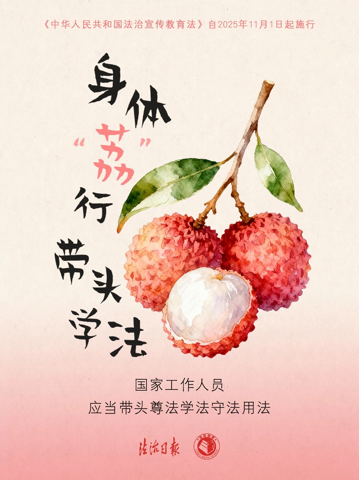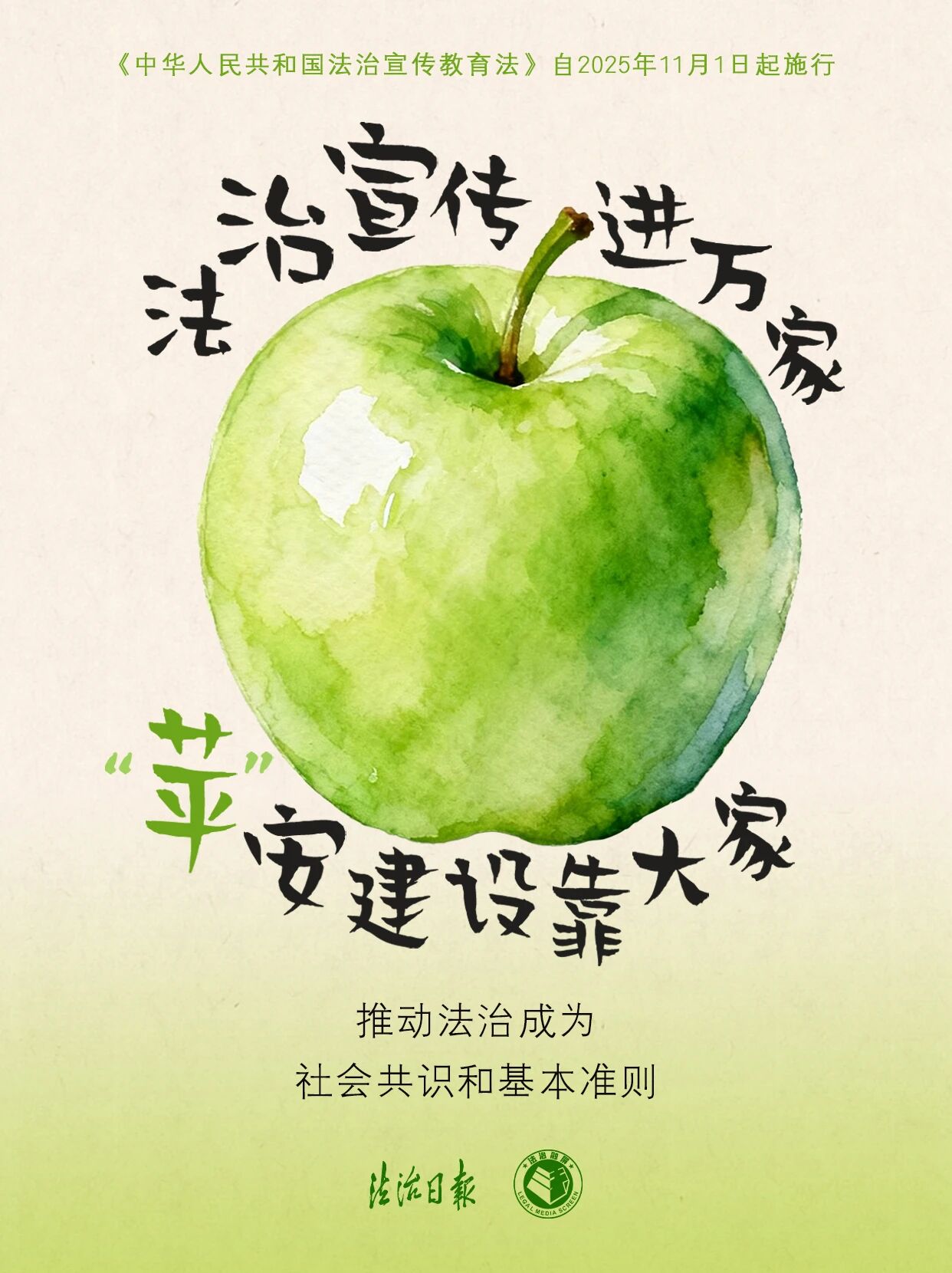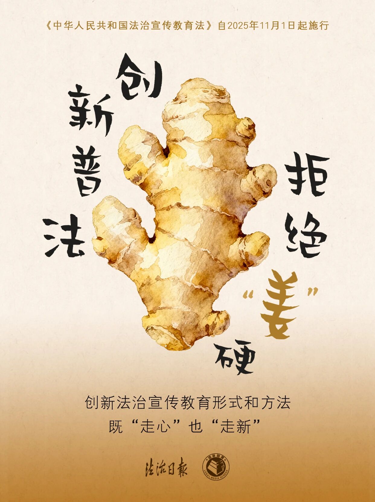 《中华人民共和国法治宣传教育法》自2025年11月1日起施行,开展全民普法,“柿”在必行、拒绝“姜”硬!一起用蔬果视角解锁“蔗”部法律,学起来~