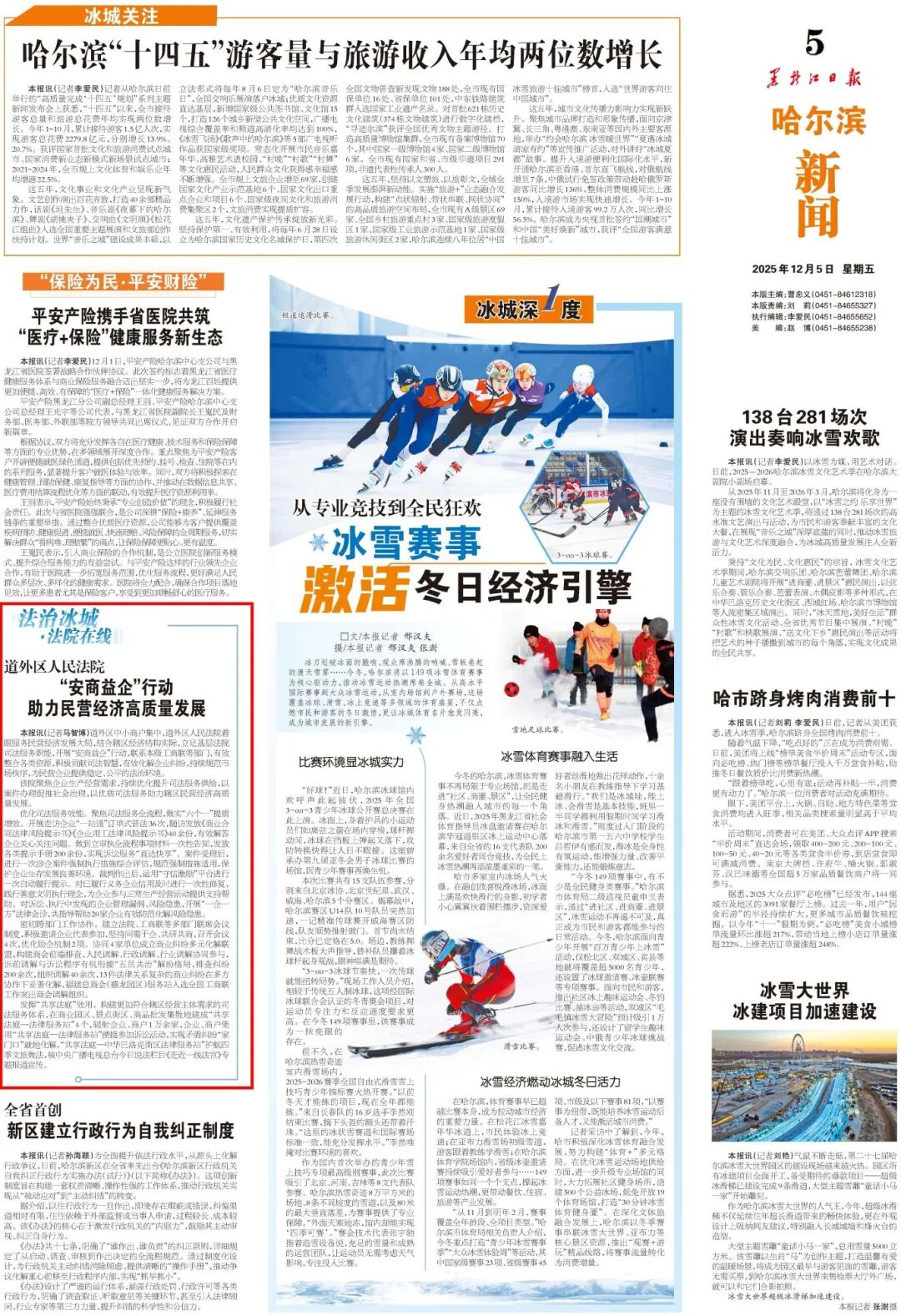 道外区中小商户集中,道外区人民法院着眼服务民营经济发展大局,结合辖区经济结构实际,立足基层法院司法服务职能,开展“安商益企”行动,联系本级工商联等部门,有效整合各类资源,积极贡献司法智慧,有效化解企业纠纷,持续规范市场秩序,为民营企业提供稳定、公平的法治环境。
