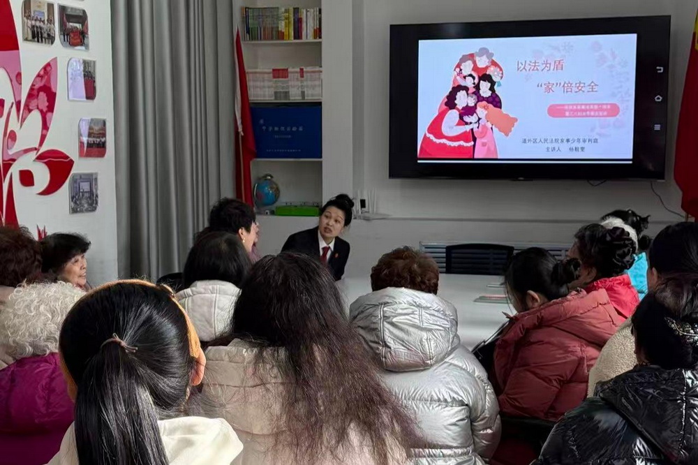 春风送暖,芳华绽放。为庆祝第116个“三八”国际妇女节,道外区法院家事少年审判庭联合道外区妇联,共同走进胜利街道三马社区、太平大街街道松锅社区,分别开展“以法为盾、‘家’倍安全”与“法治家园,共筑芬芳”系列主题宣传活动。家事少年审判庭副庭长杨靓雯、员额法官刘雪娇、法官助理王亮等法院干警,与道外区妇联、街道及社区工作人员共同参加此次宣讲活动,为辖区居民送上一份最美好的节日礼物,提供最坚实的法治安全感。