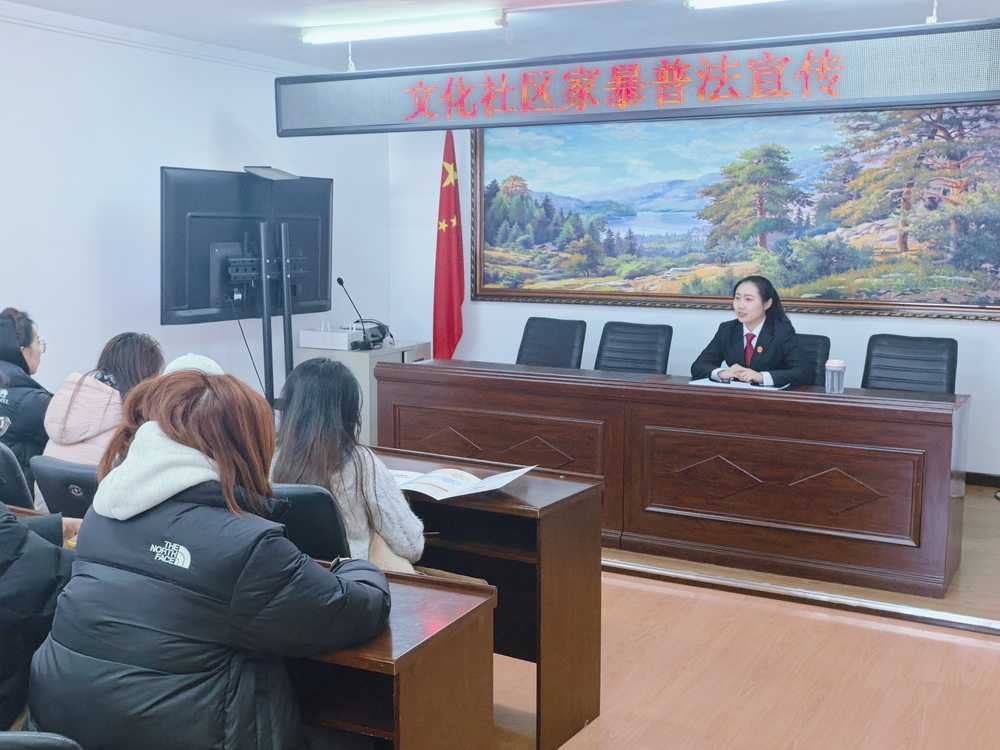 在“三八”国际妇女节来临之际,为进一步增强辖区妇女法治意识和维权能力,有效维护妇女合法权益,道外区法院立案庭干警深入民强街道文化社区,开展了一场“反对家庭暴力 维护妇女权益”的专题普法活动,为社区居民送上法治“护身符”。