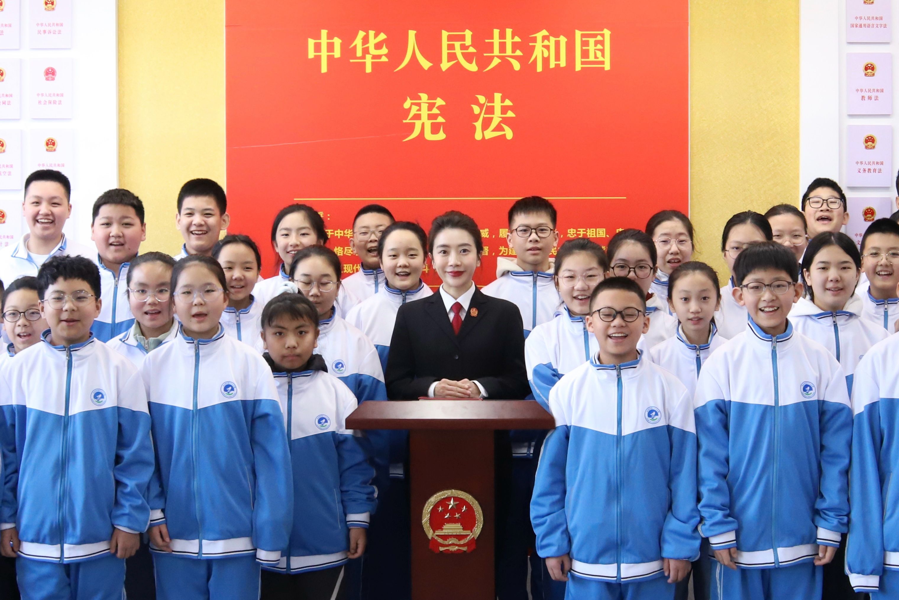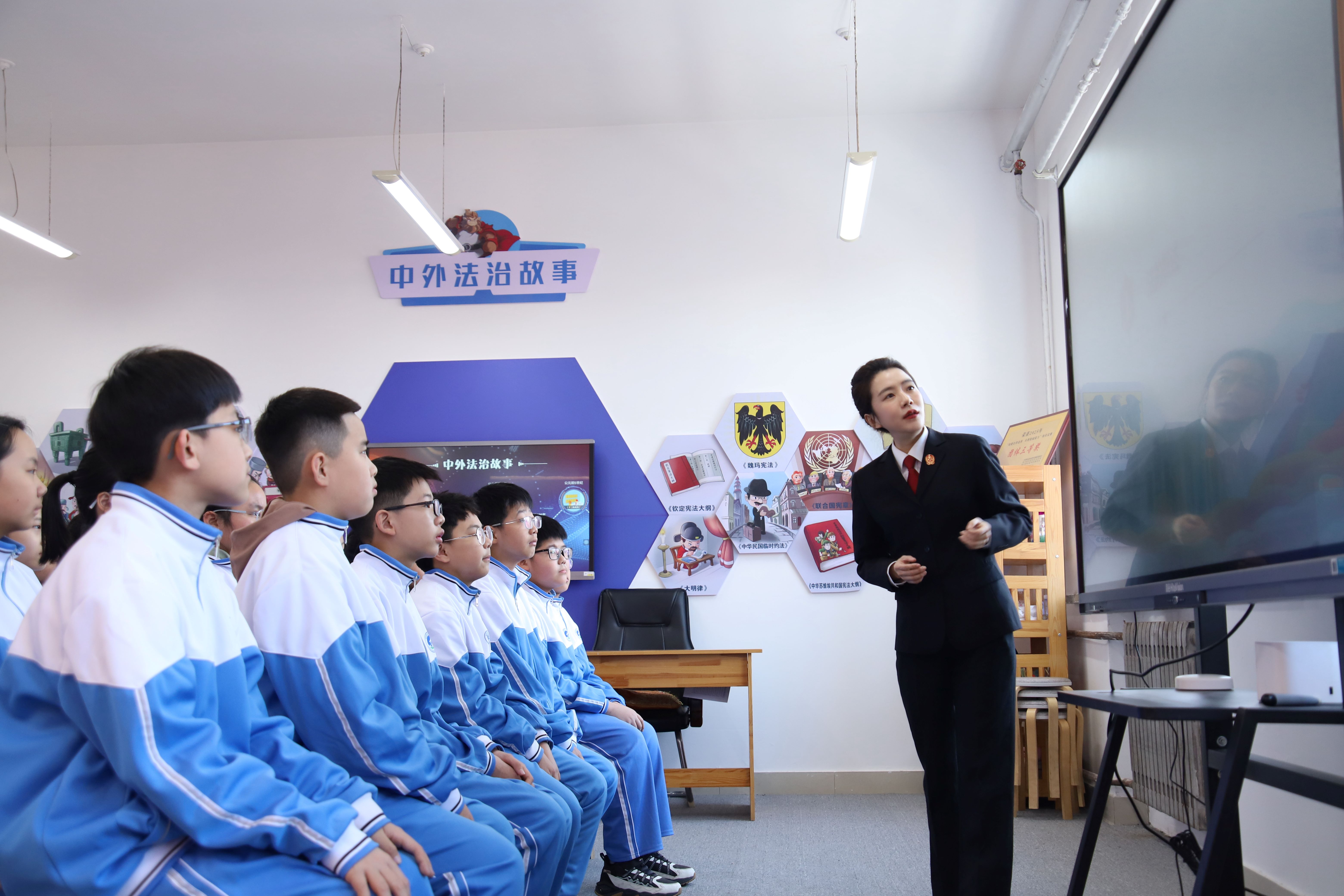 在中学课堂,庭室负责人盖雪莲法官结合《中华人民共和国未成年人保护法》与《中华人民共和国预防未成年人犯罪法》,通过真实案例深入剖析法律责任边界,引导青春期的学生们学会如何抵制违法行为,建立起理性的行为准则,种下“敬畏法律”的种子。