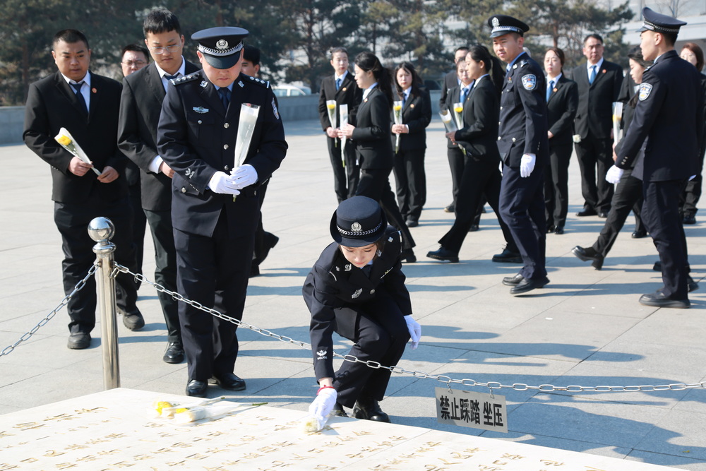 全体干警向烈士献上鲜花